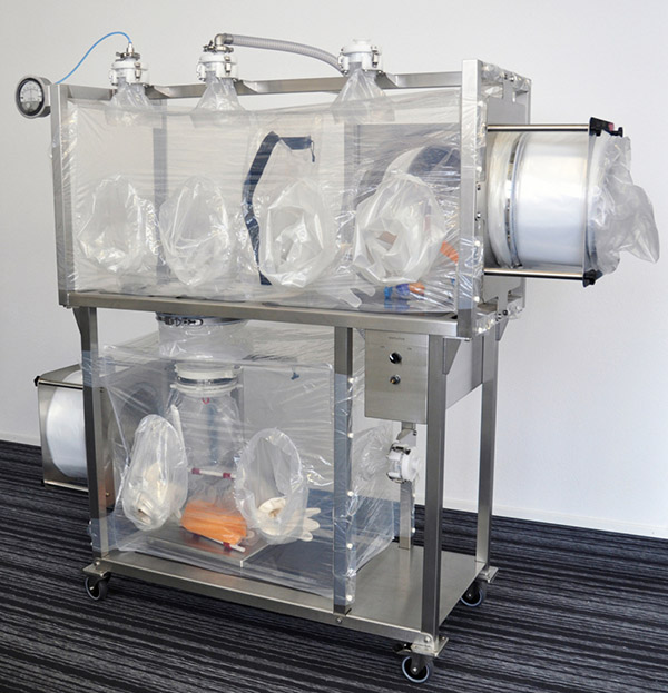 使用可選的Eling通風技術,可以在組裝後進行洩漏測試。柔性隔離器可以根據客戶需求和現場條件進行單獨調整,并配備各種客戶特定的連接(例如,帶有特殊手套和 CLS 環形襯裏,用于進出設備和産品)。